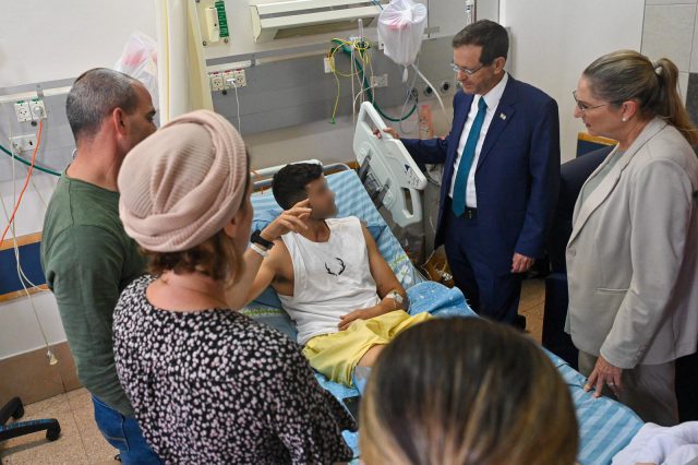 נשיא המדינה יצחק הרצוג הגיע היום (שני) למרכז הרפואי סורוקה וביקר את הפצועים מהלחימה בדרום, שם מאושפזים כ-140 אזרחים וחיילים מהלחימה בדרום.