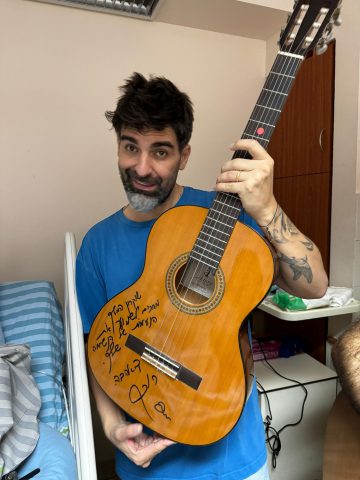 הזמר גם נתן גיטרה עם הקדשה לפצוע שידו נפגעה קשה, וביקש שיבטיח לו שינגן עליה. "מחר יום חדש" כתב הזמר "בעזרת השם חיוכים חדשים ואופטימיות גדולה".