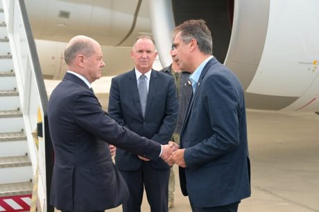 הקנצלר הגרמני דיבר על עמידתה של גרמניה לצידה של ישראל וכן התייחס על החשיבות בשמירת הביטחון. "תודה רבה על השיחה הטובה, הביקור הוא בזמנים קשים אצל חברים וכפי שאמרתי בבונדסטאג, בזמנים הקשים יש לגרמניה מקום אחד והוא לצידה של ישראל", אמר שולץ.
