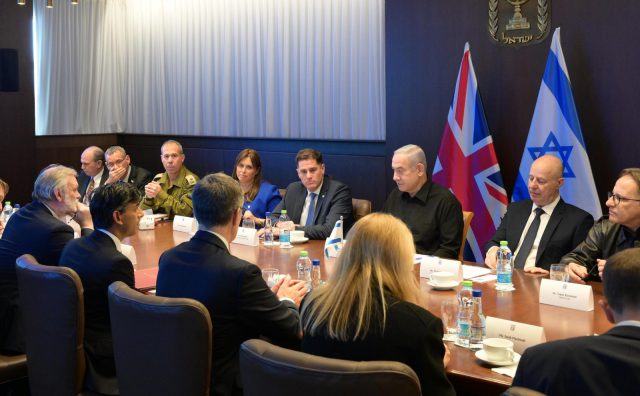ראש הממשלה בנימין נתניהו נפגש היום (חמישי) עם ראש ממשלת בריטניה רישי סונאק, שהגיע לביקור תמיכה בישראל. בתום הפגישה המשותפת, השניים נשאו הצהרות לתקשורת.