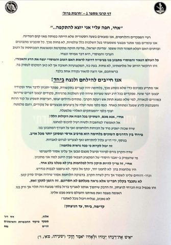 ובהמשך: "אחיי, זה צריך להיות תיקון גדול למלחמות בהן לא פעלנו בלב אחד. היו מלחמות בהן לא לחמנו יחד, 'כתף אל כתף'. לא צופפנו לבבות כנדרש. זכרו – רווחים עלינו לשמור אך ורק לשדה הקרב. בדבוקה הלוחמת אסור שיהיה אפילו סדק קטן. לא נתכבד בקלון חברינו אלא נראה מעלתם לא חסרונם. זה הזמן לתקן זאת. זהו מכפיל כוח הכרתי לניצחון, זה הדבק שיהפוך אותנו לאגרוף ברזל בלתי מנוצח וזה תלוי אך ורק בנו."