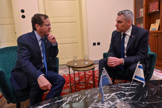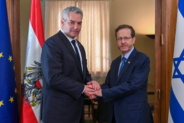 נשיא המדינה יצחק הרצוג נפגש היום (רביעי) בירושלים עם קנצלר אוסטריה קארל נהאמר שהגיע לישראל לאור המצב הביטחוני.