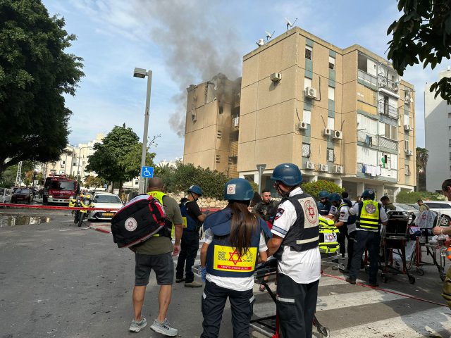 מתנדבי איחוד הצלה שהעניקו סיעו ראשוני לארבעה נפגעים כתוצאה מנפילת הרקטה, הכוננים הוזעקו לבניין בתל אביב בעקבות דיווח על פגיעת רקטה בבניין. יחד עם חובשים ופראמדיקים של מד"א, העניק הצוות טיפול רפואי ראשוני הכולל קיבוע וחבישות לצעיר כבן 20 עם חבלות בראש ובגפיים במצב בינוני ולשלושה נפגעים במצב קל, והם פונו להמשך טיפול בבית החולים איכילוב בעיר.