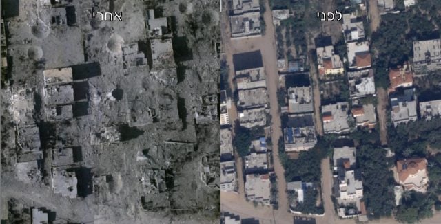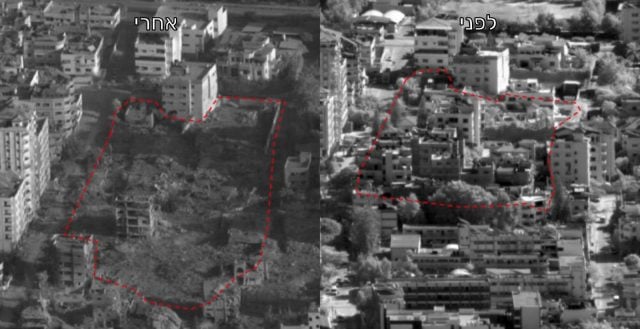 בתמונה זו ניתן לראות מבנים שלמים שהוסרו מהמפה, בנוסף לכך ניתן לראות גם את מכתשי ההפגזות אשר מותיר צה"ל במסלול ההתקדמות של הכוחות.