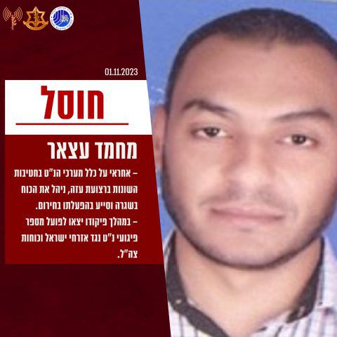 על פי הודעת כוחות הביטחון, צה״ל בהכוונת מודיעין אמ"ן ושב"כ, חיסל את מחמד עצאר, ראש מערך הנ״ט של ארגון הטרור חמאס באמצעות מטוס קרב.
