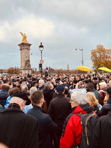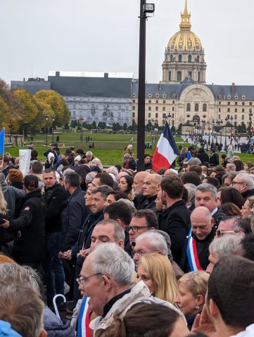 בבירה יצאה התהלוכה משעה 15:00 מפלאס דה אינווליד. עשרות אלפי אנשים צעדו, קדמו להם תהלוכה מרשימה של דמויות פוליטיות, כולל ראש הממשלה אליזבת בורן, הנשיאים לשעבר פרנסואה הולנד וניקולא סרקוזי ואפילו מנהיגים דתיים שעמדו בראש הצעדה, החזיקו שלט גדול: "למען הרפובליקה ונגד האנטישמיות" ושרו לקול מחיאות הכפיים של המשתתפים.