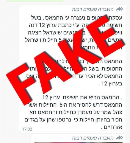 בחדשות 12 מיהרו להכחיש את ההודעה והבהירו כי מדובר בפייק ניוז, שכן הנתונים על 5 חיילות שנמצאות בשבי נמסרו בתדרוך רשמי על ידי משרד ראש הממשלה.