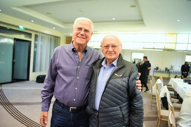 מנצ'ל עם יעקב שחר נשיא המועדון (צילום: באדיבות מכבי חיפה)