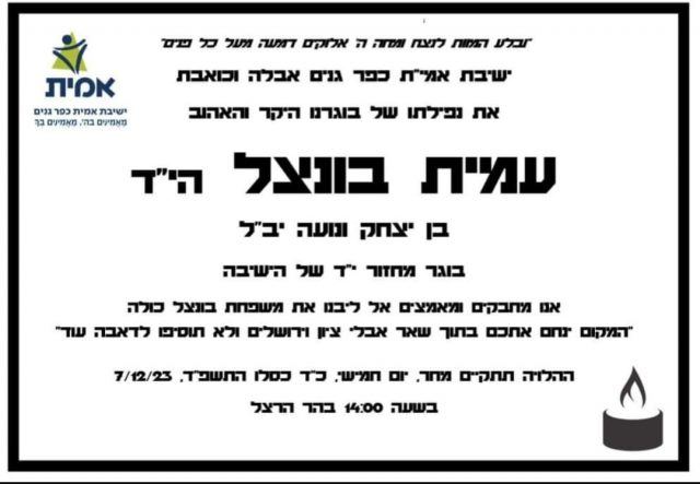 סמ"ר עמית בונצל (Bonzel), בן 22, משוהם, לוחם וסמל מחלקה בסיירת צנחנים, חטיבת הצנחנים (35), נפל אתמול בקרב במרכז רצועת עזה.