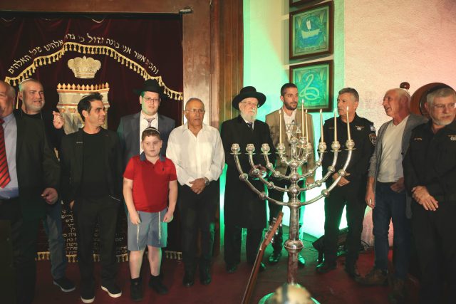 אמש (שני) התקיימה הדלקת נר חמישי של חנוכה בבית הכנסת הגדול בתל אביב, במעמד הרב הראשי ישראל מאיר לאו שליט"א ובהפקתו של יצחק ראשי. הזמר אביב גפן, שלקח חלק באירוע שכלל גם תפילה לשלום החיילים והחטופים, שר והקדיש להם את השירים "לבכות לך" ו"יומן מסע", כשכיפה לראשו.