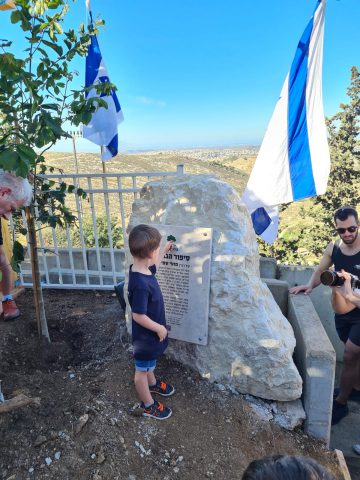 רויטל אלמנתו נשאה דברים בטקס: "אני רוצה לבקש מכם, מכל אחד שמגיע לפה, לעמוד במצפה ולהסתכל אל האופק, האופק שלמענו אנחנו וחיילנו נלחמים עכשיו, האופק שלמענו מוטי וחבריו מסרו את חייהם, האופק שמסמל עבורינו את המשך החיים, את עתיד המדינה שמוטי כל כך אהב ואת עתידנו כחברה, כאומה וכעם. האופק שתמיד מזכיר לנו שעם ישראל חי".