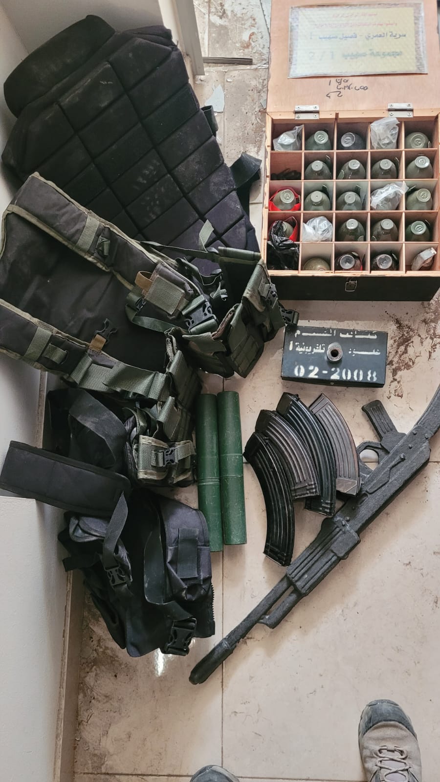 בנוסף, במסגרת סריקות במרחב מצא הכוח מטען, ארגז רימוני רסס, מדי נח'בה ווסטים ותמונות משפחתיות של ילדים קטנים ואישה מבוגרת מחזיקים נשק ארוך.