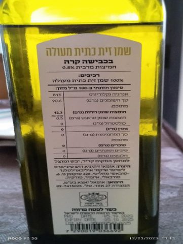 מדובר על המוצר שמן זית כתית מעולה בכבישה קרה. תכולה: 750 מ"ל. שם יצרן: אומאי זיתינא דוש טיג'יארט לימיטד שיקטי אוליבאוילסלנד- סובאשי מחליסי, 228 סוקאק נו 6, טורבאלי, איזמיר, טורקיה. שם יבואן: אופאל יאצא בע"מ, רחוב המצודה 27 אזור.