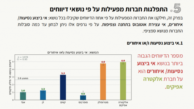 בסוגיית מספר הדיווחים הגבוה ביותר בנושא אי ביצוע נסיעות/ איחורים "זכתה" חברת אלקטרה אפיקים.