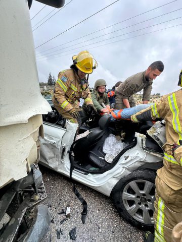 תאונת דרכים קשה נרשמה היום (ראשון) בכביש 5066 סמוך ליישוב רבבה, כאשר לוחמי אש ומתנדבים מתחנה אזורית שומרון חילצו לכודים בתאונה שהתרחשה בין משאית לשני כלי רכב פרטיים. צוותי מד"א העניקו טיפול רפואי ראשוני לגבר בן 55 שסבל מחבלה בבטן, ולאחר מכן פינו אותו לבית החולים בילינסון כשמצבו בינוני.