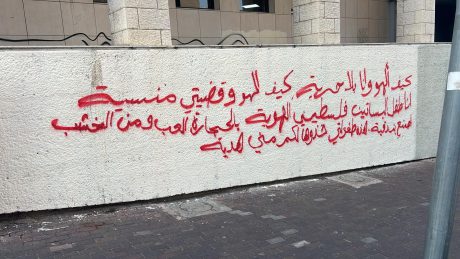 לפני כחודש, נעצרו תושב חיפה ותושבת סכנין, בחשד שריססו כתובות גרפיטי שהכילו מסרי נאצה ותמיכה בטרור במקומות ציבוריים בעיר חיפה. השניים נצפו במצלמות האבטחה מרססים את הכתובות ונמלטים.
