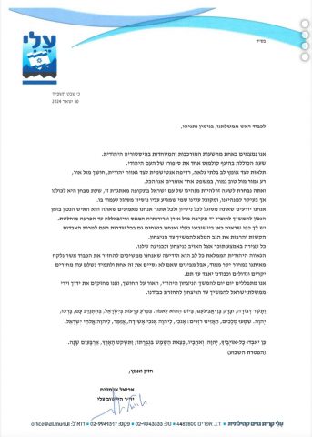 והוסיף "כפי שראית ביישובנו עלי ואנו בטוחים כי גם בכל שדרות העם למרות האבדות הקשות והרבות יש לך את הגב המלא עד הניצחון, כל עצירה באמצע תוכר אצל האוייב כניצחון שלהם וככניעה שלנו".