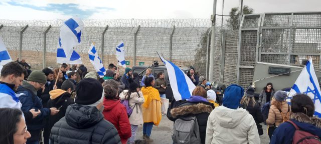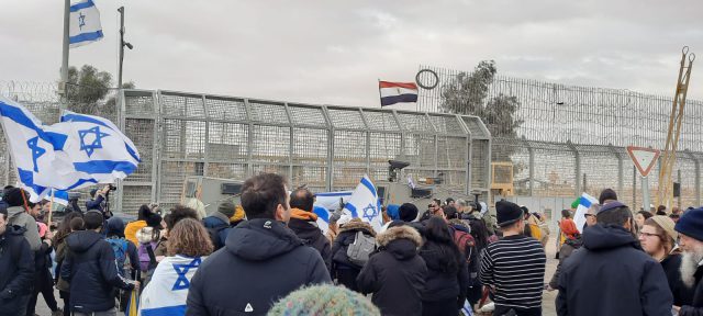 אחרי הליכה ארוכה והתגברות על מחסומים רבים בתנאי מזג אוויר לא פשוטים, הגיעו פעילי תנועת צו 9 ובני משפחות החטופים למעבר ניצנה.