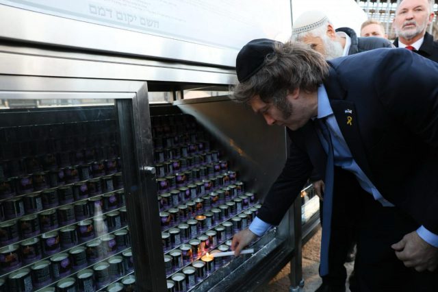 נשיא ארגנטינה חוויאר מיילי שנחת היום (שלישי) לביקור מדיני פקד את הכותל המערבי, שם נשא תפילית אישית והדליק נר נשמה לזכרם של הנרצחים.