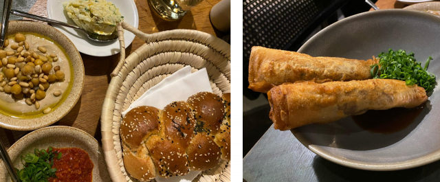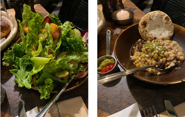 במנות הראשונות טעמנו את סיגר הלחי עגלה, שעשה מעט קונוטציות של מנה ראשונה באולם אירועים אבל טעים הרבה יותר. לצד זה אכלנו גם את השווארמה צוואר טלה, שהגיעה יחד עם חומוס וטחינה, מה שנתן לשווארמה טעם מתקתק ומיוחד.