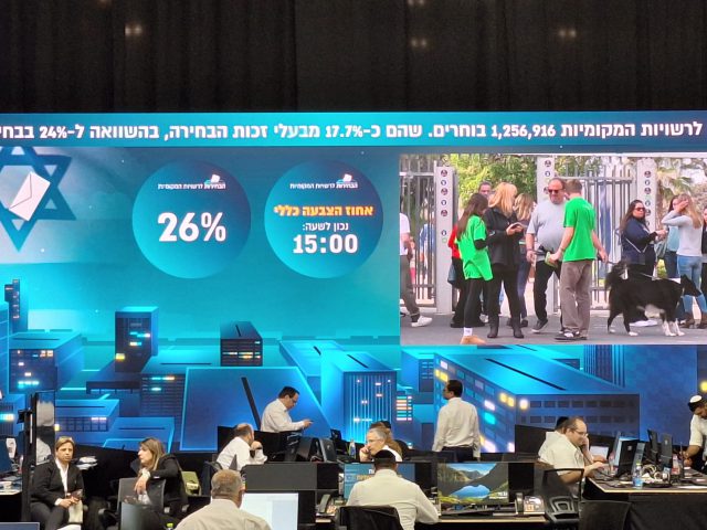 הבחירות לרשויות המקומיות נמשכות: לפי נתוני משרד הפנים, אחוז ההצבעה ברחבי הארץ עומד נכון לשעה 15:00 על 26 אחוז מכלל בעלי הבחירה, שהם 1.8 מיליון תושבים. עדיין מדובר בירידה משמעותית בהשוואה לנתונים בשעה זו מהבחירות הקודמות, כשב-2018 אחוז ההצבעה בשעה זו עמד על 32 אחוז.