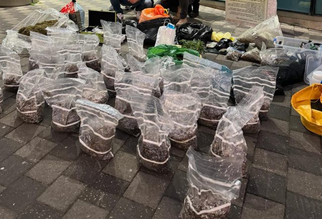 בנוסף מצאו הבלשים, רובה אוויר, וכמות גדולה של חומרים החשודים כסמים מסוכנים. סוגי הסמים שנתפסו הם: 66 גרם קוקאין, 126 כדורי אקסטזי,25.57 קילוגרם מריחואנה, 2.69 קילוגרם חשיש, 100 גרם פטריות הזיה, ו 30 גרם mdma.