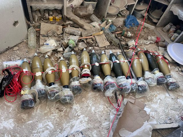 במסגרת ההתקפה של הלוחמים על תשתיות טרור במזרח השכונה, איתרו הכוחות בדירת מסתור של פעילי חמאס: פגזים, מטענים, ארגזי תחמושת, רובי קלאצ׳ניקוב ופצצות מרגמה.