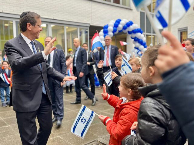 במהלך ביקורו המדיני בהולנד, נשיא המדינה יצחק הרצוג ביקר היום (שני) בבית הספר היהודי "ראש פינה" באמסטרדם, שם שוחח עם תלמידי התיכון וערך עימם שיח פתוח על האנטישמיות הגואה ברחבי העולם מאז מתקפת הטרור האכזרית בשבעה באוקטובר.