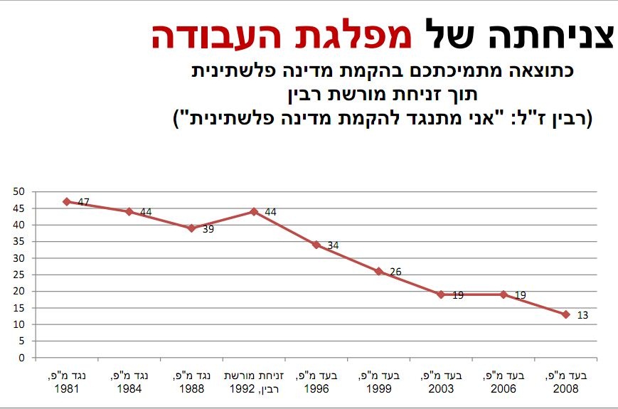לפנייה המפתיעה, צורף גרף ובו אכן נראית יציבות ברמה של מעל 40 מנדטים כל עוד מפלגת העבודה התנגדה למדינה פלשתינית בהתאם למורשת רבין, לעומת צניחה תלולה במספר המנדטים משנת 1992, עת מפלגת העבודה פסקה מלהתנגד להקמת מדינה פלסטינאית ביהודה ושומרון.