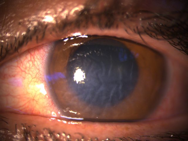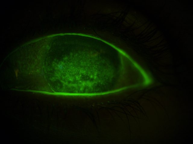 במיון אבחנו רופאי העיניים פגיעה משמעותית בראיה, דלקת קרנית (קרטיטיס) קשה, שמלווה בבצקת ועכירויות מרובות בקרנית. היא אושפזה מיד במחלקת עיניים לצורך קבלת טיפול אנטיביוטי ולאחר מכן גם בסטרואידים.