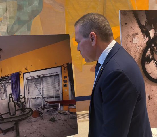 שגריר ישראל באו"ם גלעד ארדן חנך הלילה (בין שלישי לרביעי) תערוכה בכניסה לאו"ם המציגה את זוועות החמאס ב-7.10. באירוע ההשקה השתתפו שגרירים מעשרות מדינות.