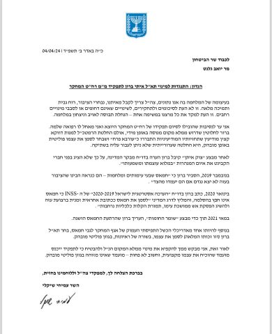 שר התפוצות עמיחי שיקלי מהליכוד, שיגר מכתב לשר הבטחון יואב גלנט, בו הוא מוחה על החלטת הרמטכ"ל, הרצי הלוי, למנות את איתי ברון למ"מ ראש חטיבת באמ"ן, ואומר כי מדובר בדמות מזוהה פוליטית.