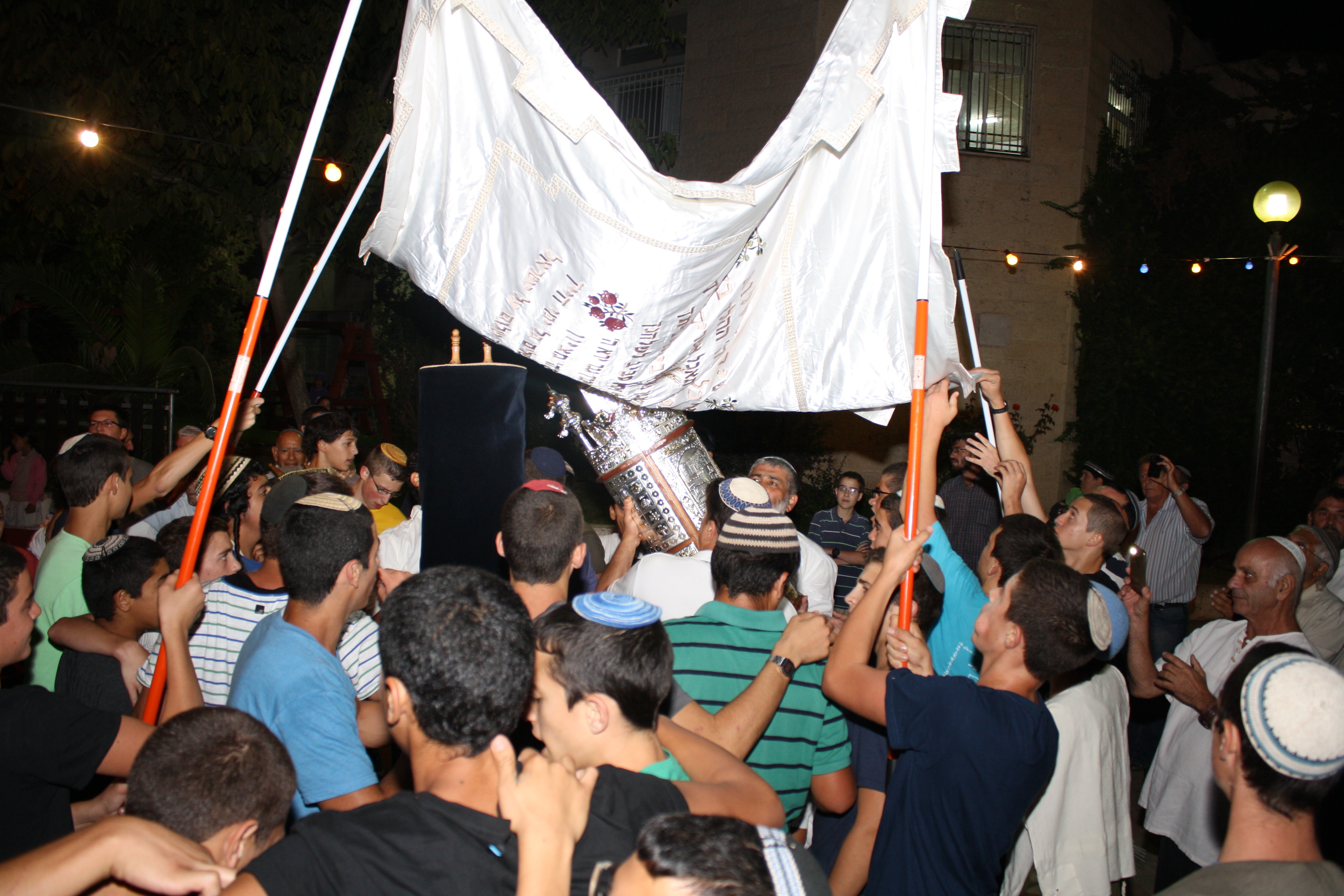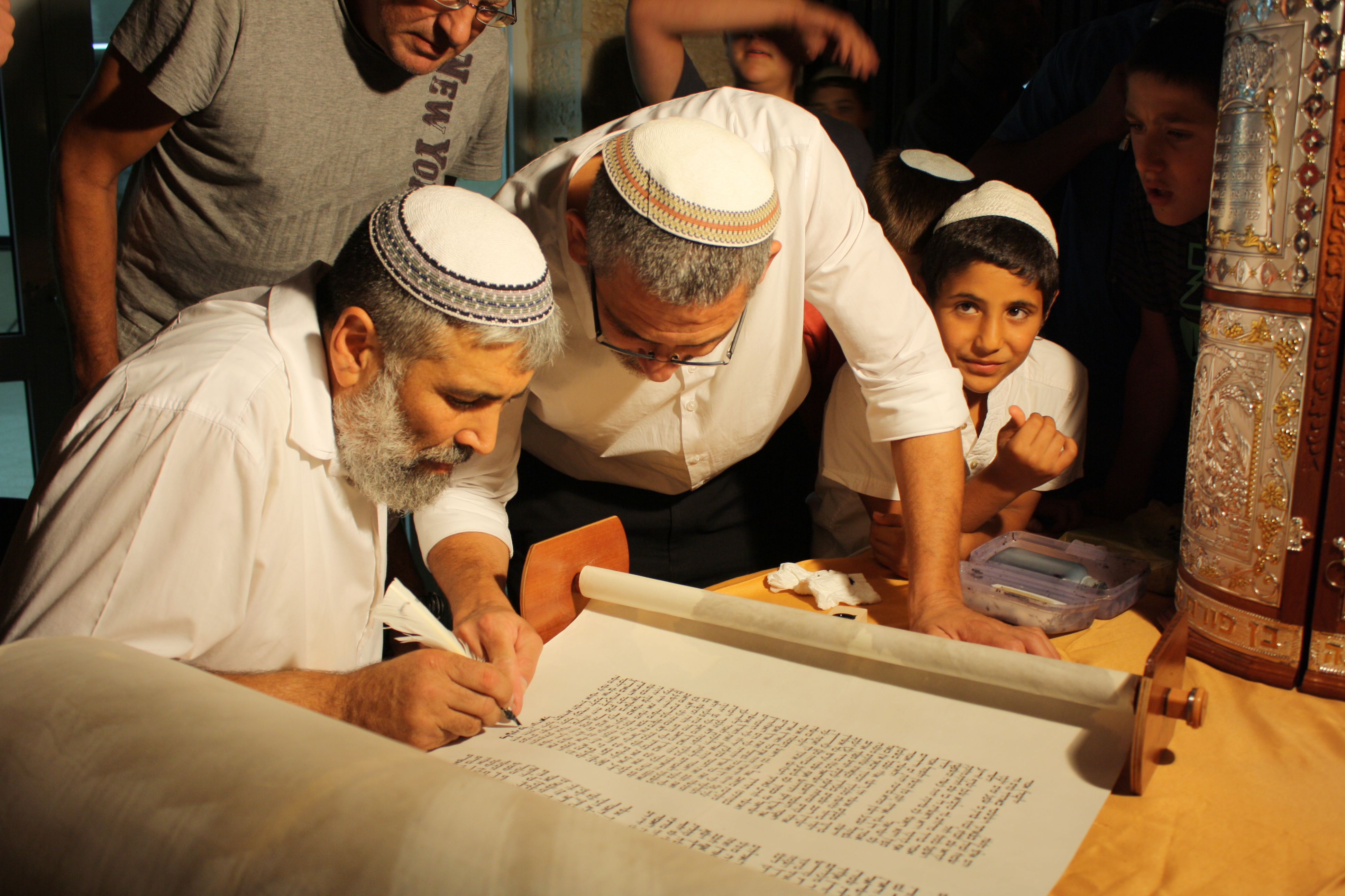 תלמידי הישיבה והוריהם הגיעו לשמוח ולרקוד במעמד הקדוש. בין האורחים המכובדים היו גם  הרב זלמן מלמד, מנכ"ל רשת ישיבות בני-עקיבא הרב בני נכטיילר, ראש מועצת בית-אל שי אלון, ומרדכי חי ימין, בנו של הרב ניצן ימין שנפצע קשה במבצע צוק איתן. מרדכי חי קיבל שחרור מיוחד מבית החולים והצליח לכתוב אות בספר התורה תוך שהוא מחזיק בידו של סופר הסת"ם.