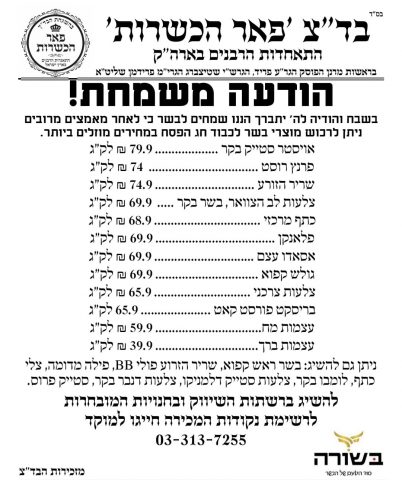 בעידן שבו מחירים מופקעים לבשר כשר איכותי מכבידים על רבים, התאחדו רבנים מובילים כדי להציג יוזמת כשרות פורצת דרך שמטרתה לבלום את העלויות הללו. בד"ץ "פאר הכשרות" בהובלת גדולי הרבנים ובראשם הפוסק הליטאי הגאון רבי עמרם פריד, עונה מצד אחד על רמת הכשרות הגבוהה ביותר לצד הצג מחירים שפויים.