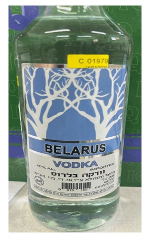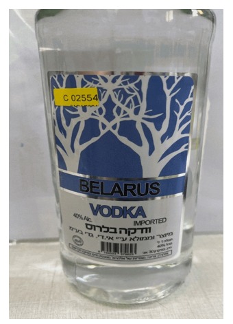 וודקה מסוג BELARUS VODKA, תכולה 1 ליטר, כוהל 40%, מיוצר וממולא על ידי אי. די. גדי בע"מ, נושא בר קוד 3313150 ו- 6784593379623. מוצר זה הכיל ריכוז של בוטנול שלישוני. נדגמו שני מוצרים מאותו מותג, האחד בחנות "טעם של פעם", ברחוב הרצל 45, ראשון לציון והשני בחנות "מחסני השתיה", רחוב היצירה 6, בית שאן.
