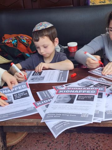 "יש פה בחור מבארי שהתחבא 23 שעות בתוך ארון, הוא הולך לעמוד על הכיסא ולהקריא את כל השמות של החטופים. אנחנו הולכים להתפלל ביחד, ומקווים שזה יעשה רעש בשמיים".