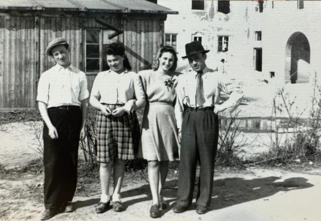 (סבא יצחק משמאל עם אחיו ששרדו את השואה, נפגשו בביתם שבהונגריה בסיום המלחמה)