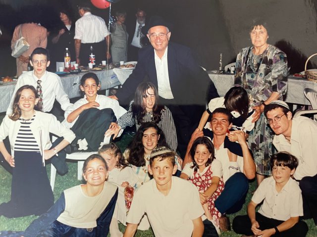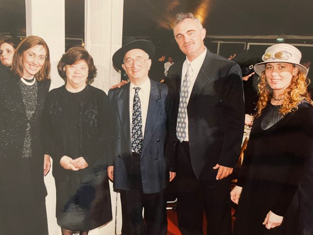 (מימין ריקי יעקובוביץ', בנצי לזרוביץ' הבן הבכור, סבא יצחק ותאומתו גיטל'ה, והבת השניה שראלה)