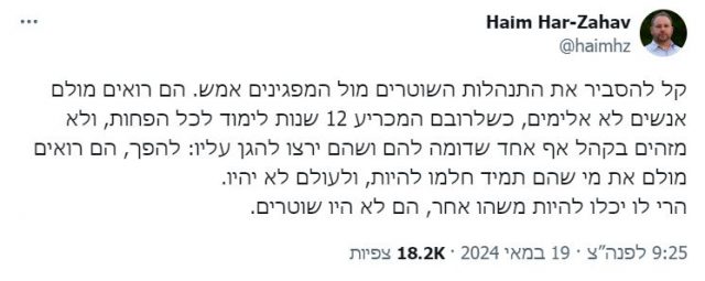 וכך עוד עשרות תגובות שקוטלות את הר-זהב על התיוג של השוטרים ועל הניחוח הגזעני של מה שכתב.