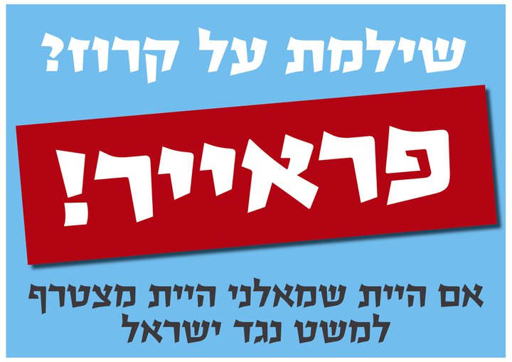 ארגון "ישראל חופשית" יצא הבוקר בקמפיין אנטי חרדי בו הוא מכנה "פראייר" את מי שהתגייס לצבא, מהסיבה ש"אם היית אברך, היית אוכל חינם". הקרירטוריסט אור רייכרט, יצא בקמפיין אישי משלו נגד השמאל הישראלי בו הוא לוקח את הרעיון ומכנה פראייר את השמאל הישראלי. שלא תצאו פראיירים