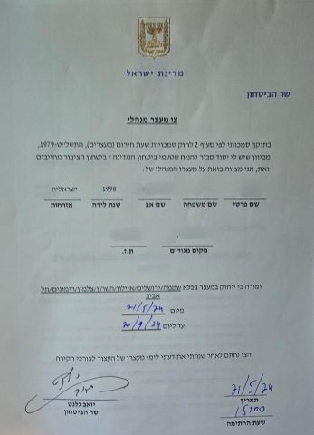 מבול המעצרים המנהליים נמשך: מתיישב נוסף נעצר הבוקר (שלישי) במעצר מנהלי ל-4 חודשים עליו חתם שר הביטחון יואב גלנט.