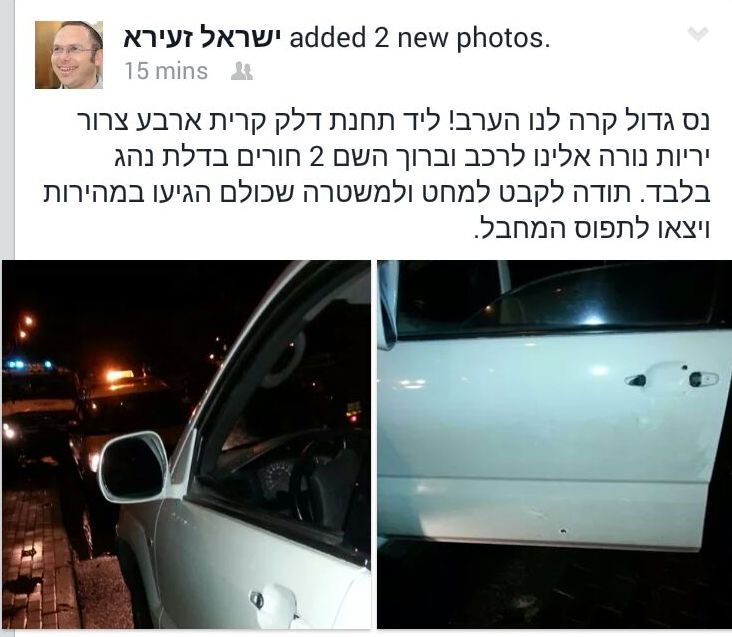 מנכ"ל באמונה ומנכ"ל ראש יהודי ישראל זעירא ניצל הלילה מפיגוע ירי.