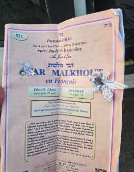 הרב סיפר כי "בווסט של אלי נמצא עלון "דבר מלכות" מפולח בשני כדורים, העלון נקרע ואיתו נקרע ליבינו, אך לא נקרעה רוחינו. רוח של תורה וקדושה, רוח של ספרא וסייפא, של נשק תורה, רוח של מלכות."