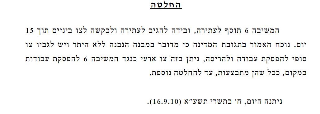 מוועד מתיישבי השומרון נמסר כי "שוב ושוב אנו נחשפים למדיניות שיפוט ואכיפה הנגועה בפוליטיקה וברדיפת יהודים. המנהל האזרחי ושר הביטחון היו חדורי התלהבות לפרק ולאטום את בית כנסת ב'אל-מתן' אולם כשמדובר בבג"צ מסתבר ששום דבר לא מפריע לרשויות האכיפה".