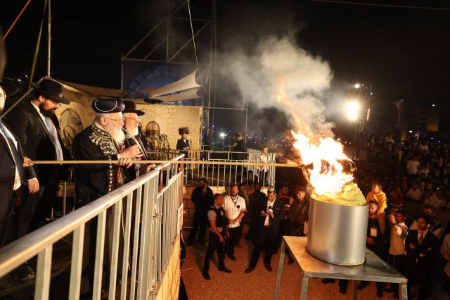 ל"ג בעומר תשפ"ד .עשרות אלפי אנשים הגיעו למתחם קבר שמעון הצדיק בשכונת שייח ג'ראח בירושלים להדלקה המרכזית של ל"ג בעומר.