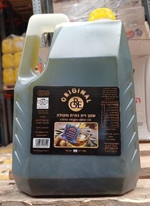 1 .שמן זית כתית מעולה. תכולה 4 ליטר. תאריך פג תוקף 12/26 – "original". ממולא ע"י חברת הזית שיווק שמן זית ומשווק בלעדית על ידי מ.ש.ר HLNA- שיווק מוצרי מזון.