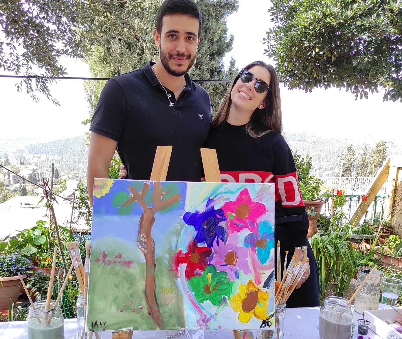 ציור זוגי אצל חיה וייט בעין כרם. (צילום חיה וייט)
