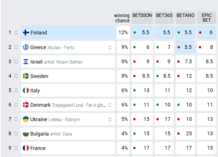 על פי נתונים של אתרי ההימורים המרכזיים באירופה, ישראל מחזיקה כעת ב-9% סיכויי זכייה בלבד בתחרות הזמר של האירוויזיון.