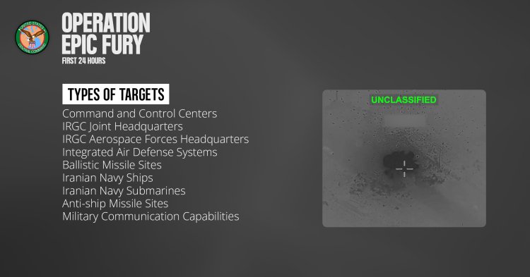 פיקוד המזרח התיכון האמריקאי, Centcom, מפרסם סיכום יעדים ראשוני של המערכה באיראן, ומסכם את כלל נתוני 24 השעות הראשונות. איזה יעדים הותקפו, בעזרת אילו כלי טיס וחימושים וכיצד נראה עד כה מבצע "זעם אפי" של ארצות הברית.