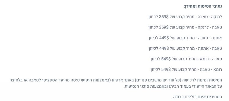 מסלול הטיסות שיפעלו על ידי חברת ארקיע: